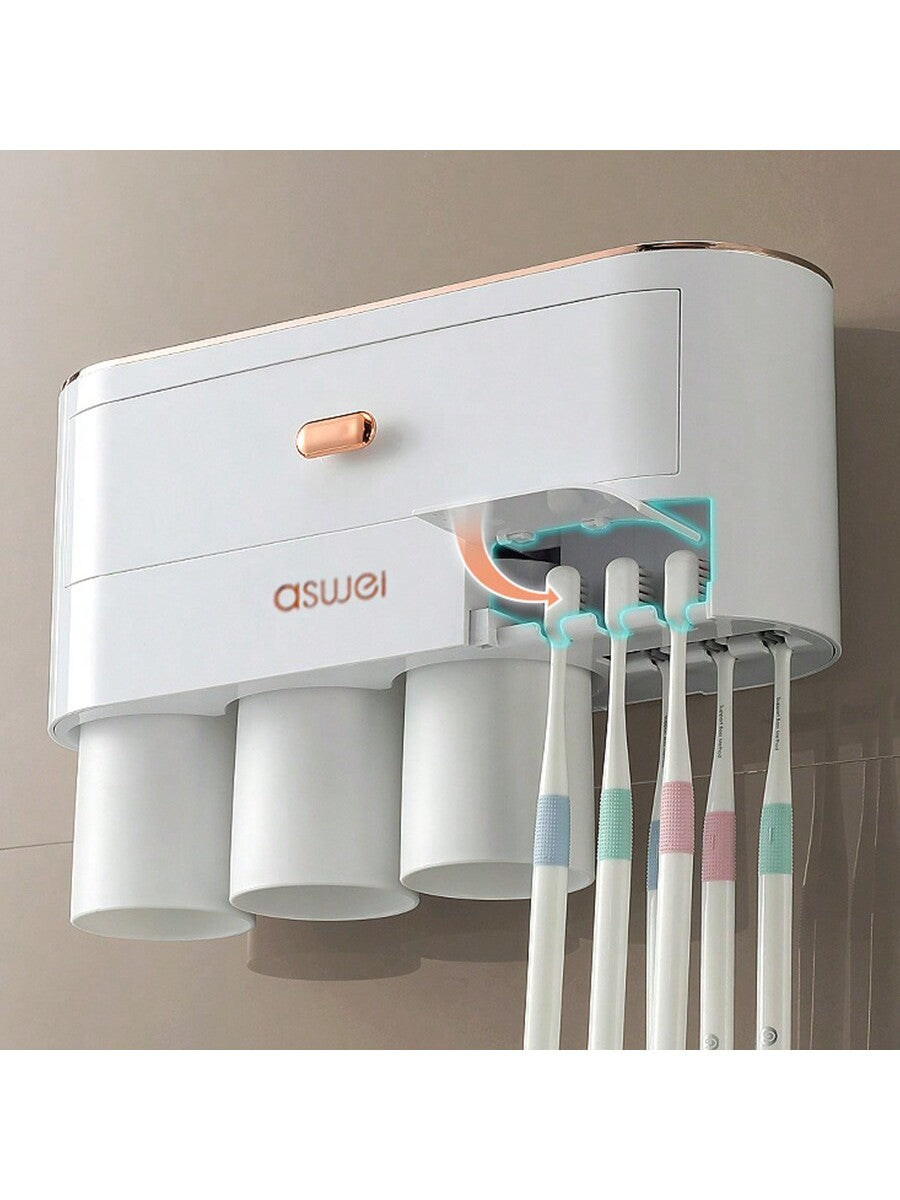 1 Pc No Punch No Trace Sticker Mouthwash Cup Shelf, Can Place Cosmetics, Comes With 3 Mouthwash Cups, Can Hang Cups Upside Down To Drain, Can Store Hanging Toothbrushes, Wall-Mounted Household Organizer For Home/Hotel/School, Etc White